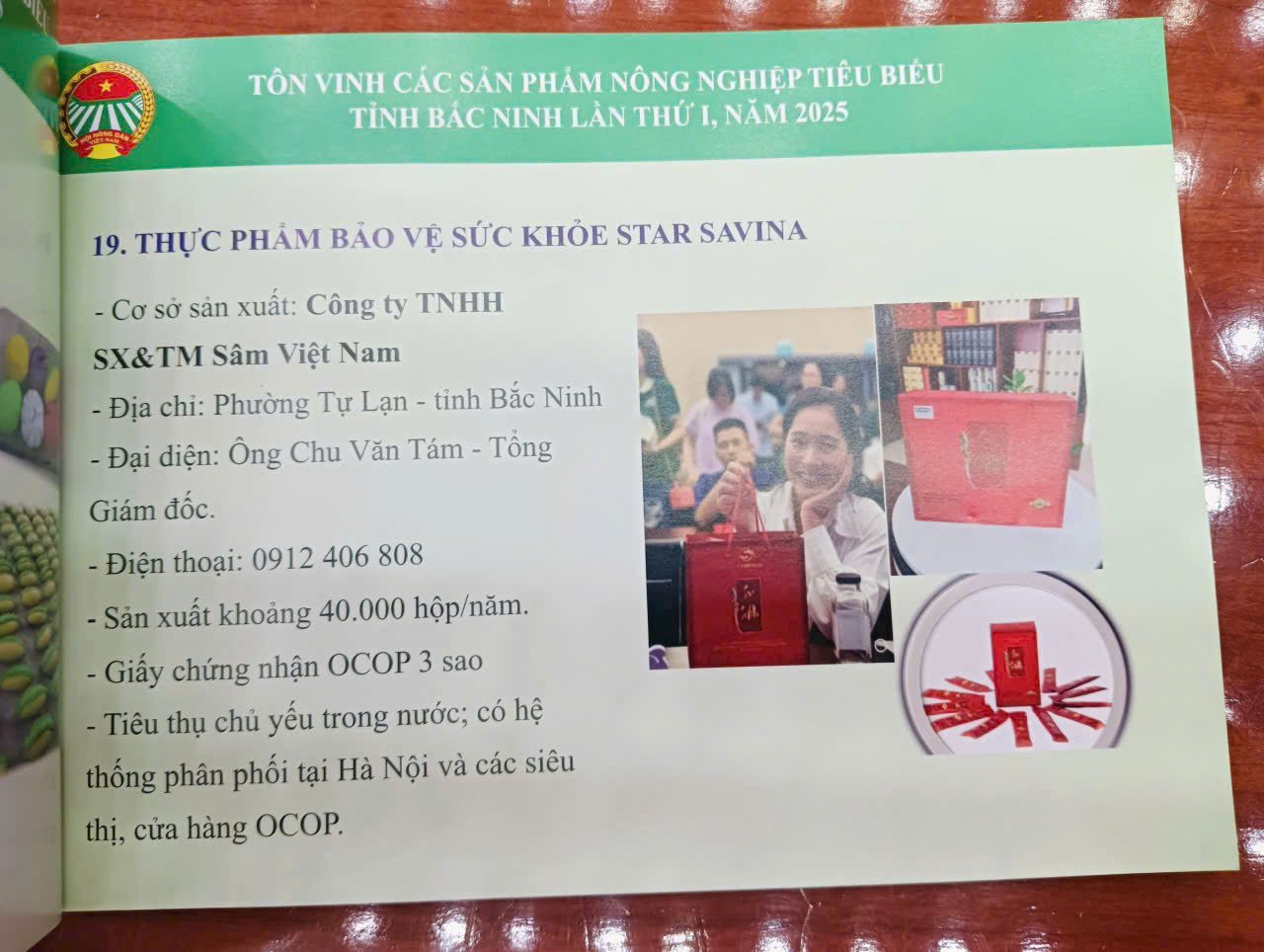 SẢN PHẨM STAR SAVINA CÔNG TY TNHH SẢN XUẤT VÀ THƯƠNG MẠI SÂM VIỆT NAM VINH DỰ ĐƯỢC VINH DANH SẢN PHẨM NÔNG NGHIỆP TIÊU BIỂU NĂM 2025